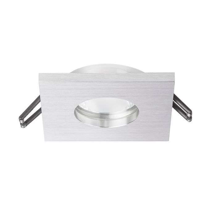 Süllyesztett lámpatest szálcsiszolt alumínium kerettel. A fény nyílást részben szatinált üveg borítja. Párás környezetben használható.