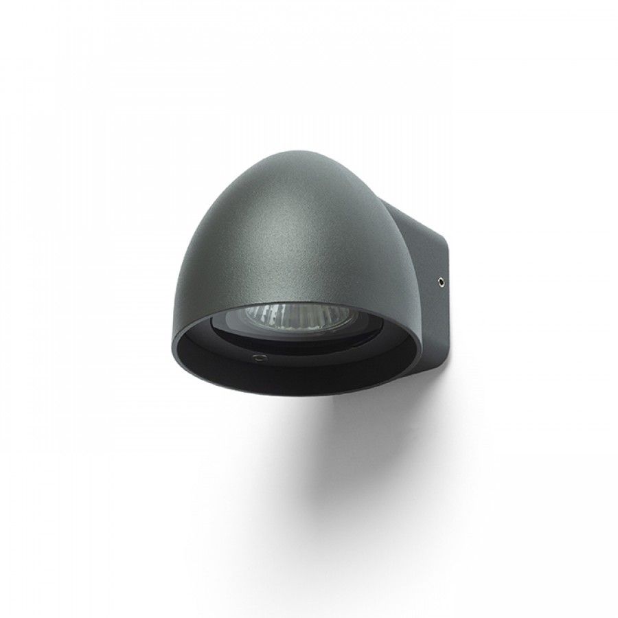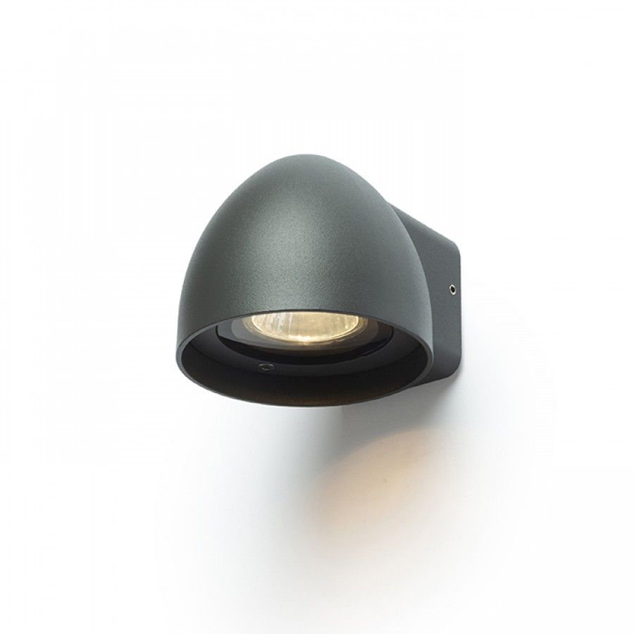 Kültéri fali lámpa foglalattal GU10 fényforrásokhoz. A lámpatest háza festett, öntött alumíniumból készül.
