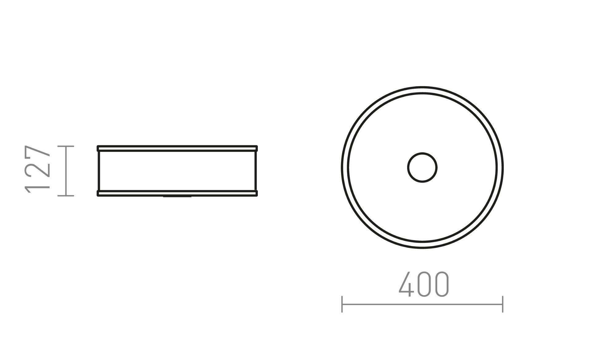 LED mennyezeti lámpatest. Az alsó rész szatinált üveggel van befedve, amely egy króm kupakkal ellátott csavarral van rögzítve. A lámpatest oldala tej akrilát üvegből készült.