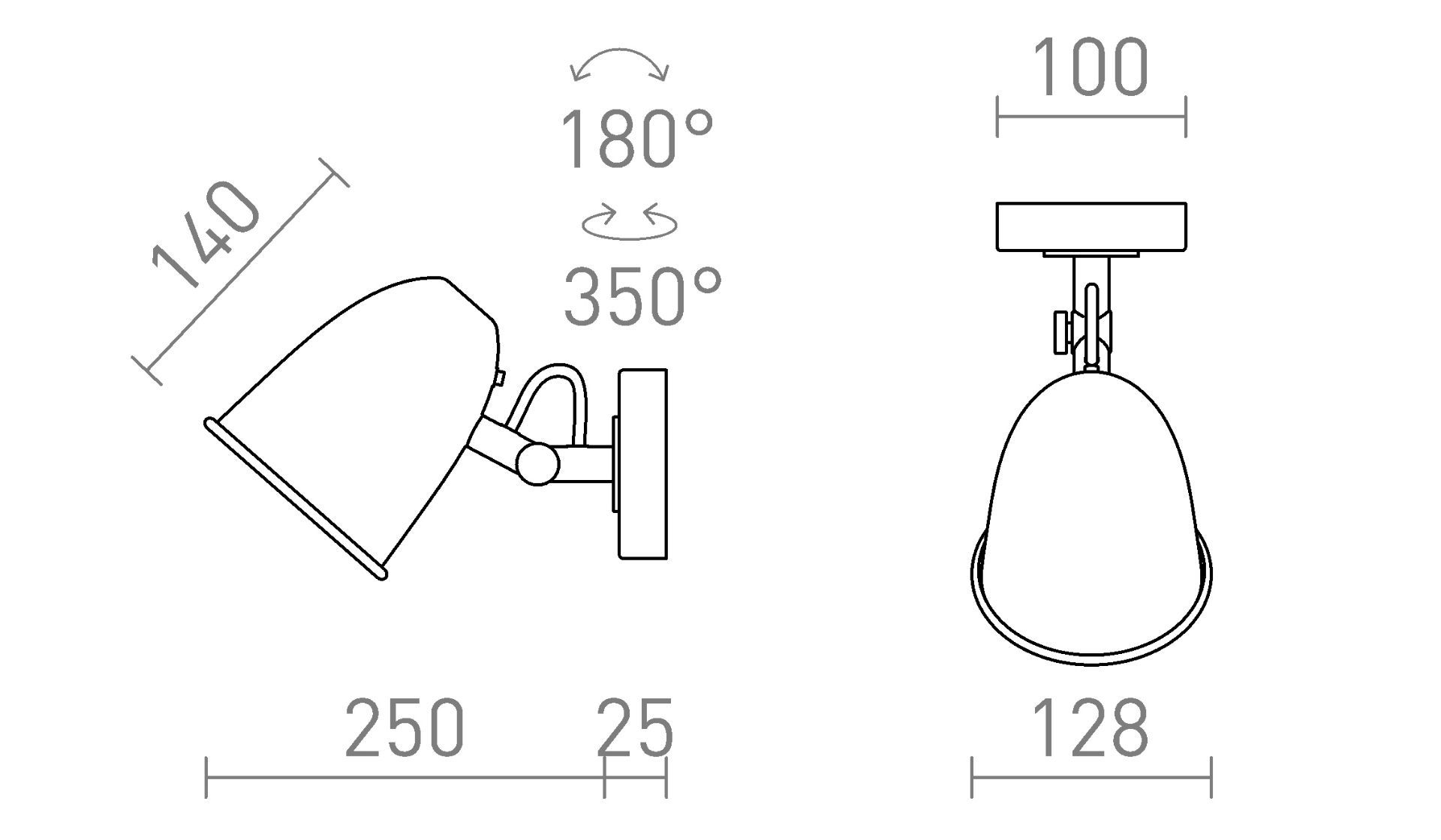 Fali fém lámpatest dönthető reflektorral LED-es fényforrásokhoz, E14-es foglalattal. A kapcsoló az ernyő hátulján található.
