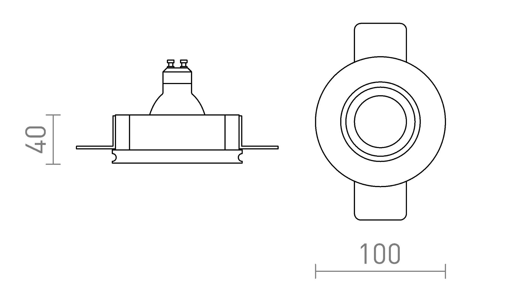 Gipszkartonba süllyeszthető lámpatest belső fémreflektorral, nem dönthető, GU10 LED fényforráshoz.