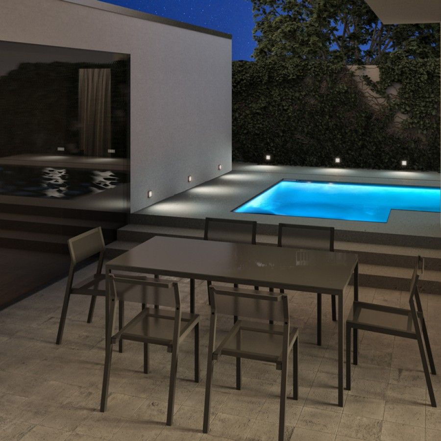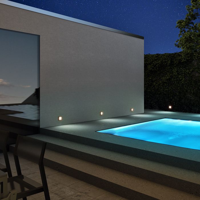 Süllyesztett, négyszög alakú LED lámpatest a járdák, lépcsők vagy teraszok megvilágítására.