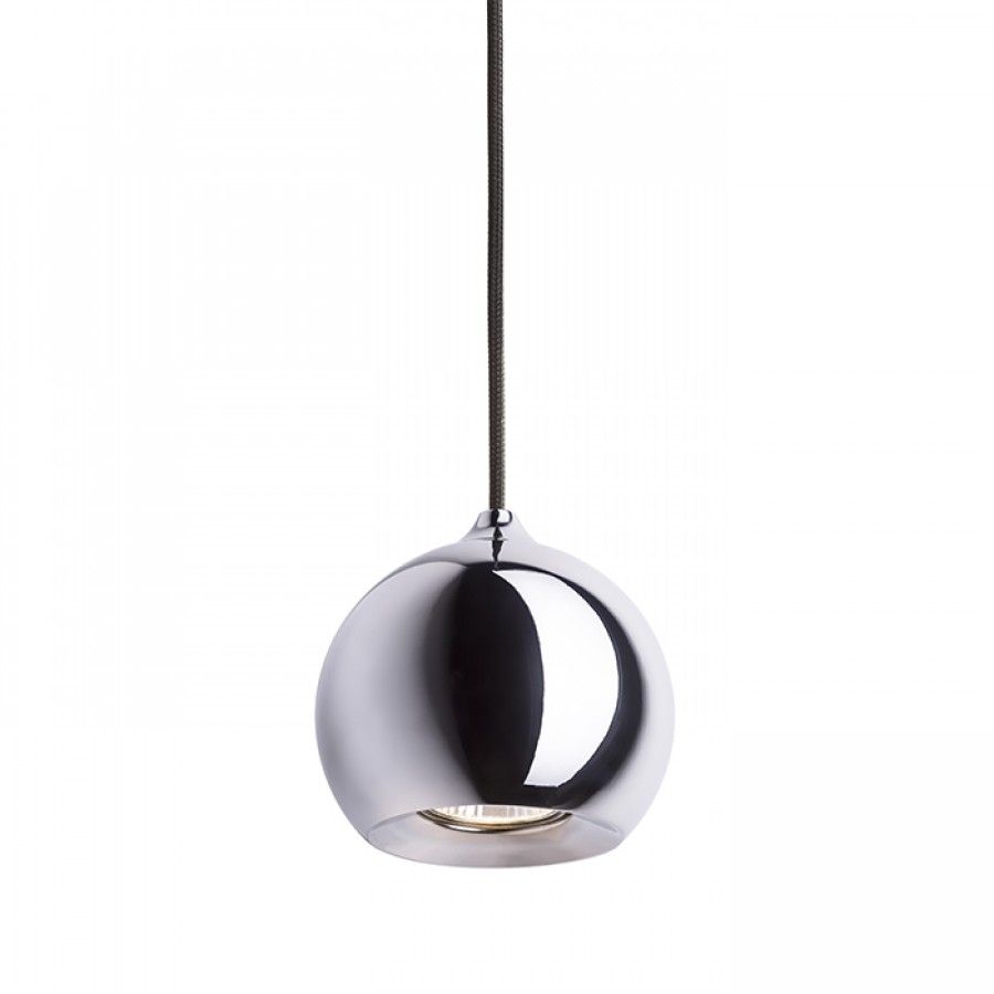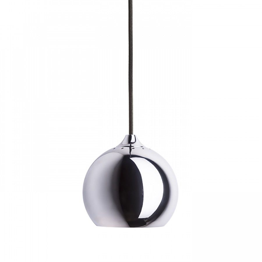Függő lámpatest króm búrával és mennyezeti alappal.