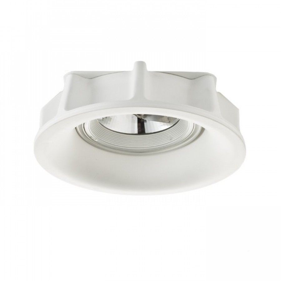Gipszkartonba süllyeszthető gipsz lámpatest kör alakú nyílással. Keret nélküli kivitel. A lámpatestek átfesthetők beltéri falfestékkel. Csak gipszkartonba szerelhető.