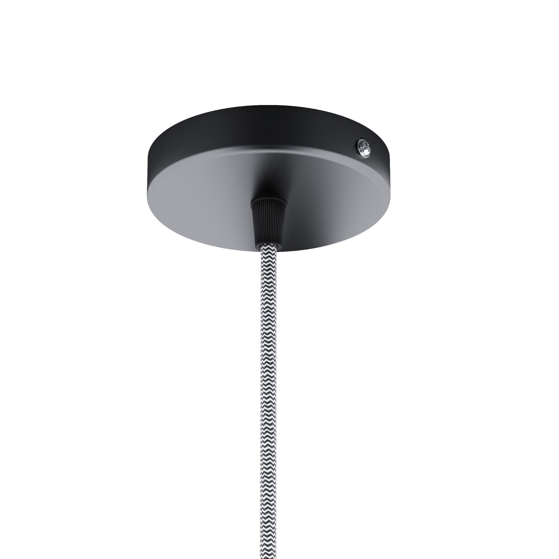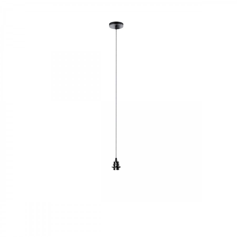 Függesztő készlet, kör alakú, fekete lakkozott alappal, textil kábellel, valamint egy fém E27 foglalattal. Alkalmas önálló használatra, vagy lámpatestek függesztésére. Megfelelő lámpabúrák: ARISTA, DELI, JAKARANDA, DOUBLE 40/30, DOUBLE 55/30, ASPRO 40/30, RON 40/25, RON 55/30, RON 60/19, TEMPO 30/19, TEMPO 50/19.