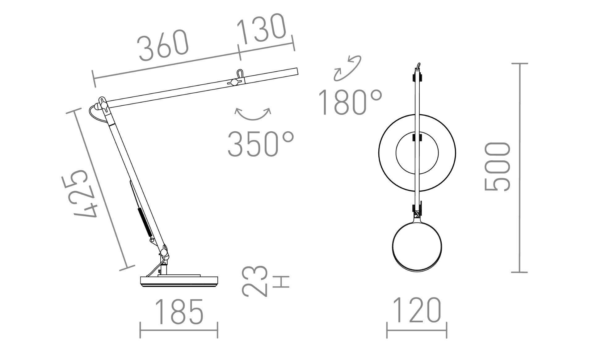 LED asztali lámpa két karral. Az intenzitásszabályozó a fényszóró tetején található. Háromfokozatú fényerőszabályozás. A lámpa az EMA rögzítő (R14290, R14291) külön megvásárlásával asztallapra vagy polcra is rögzíthető.
