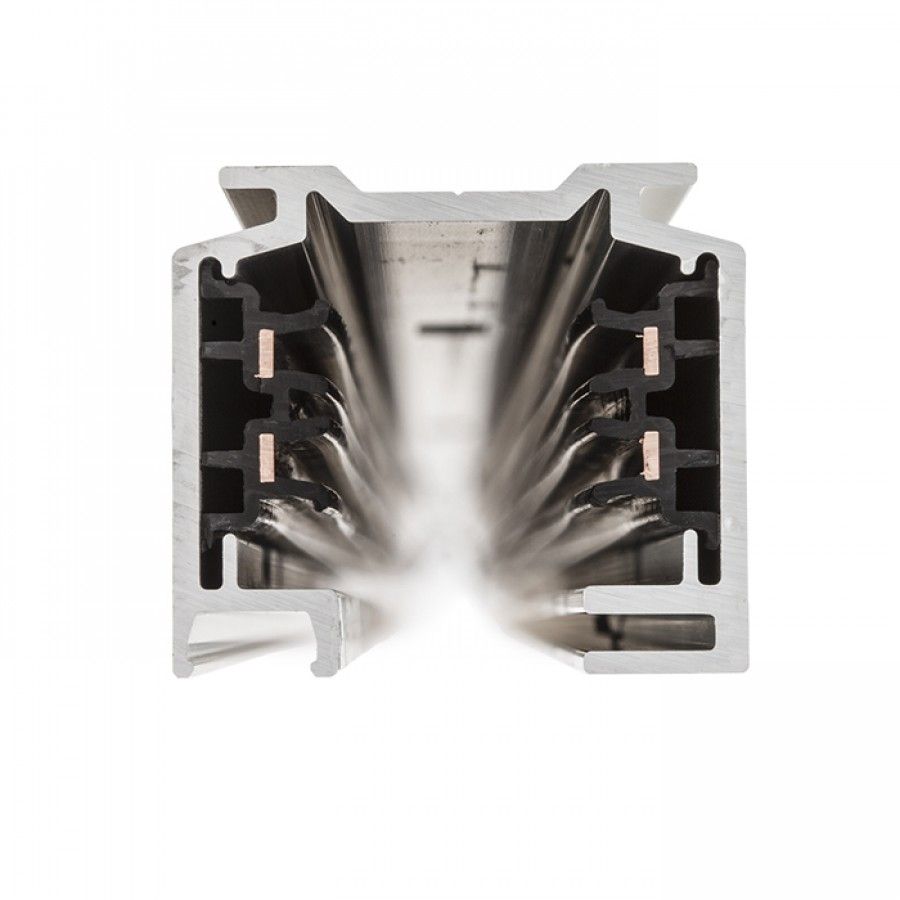 EUTRAC három áramkörű sín. Bármely profil könnyen vágható a kívánt hosszra. A huzalvégeket nem kell levágni vagy meghajlítani. Halogénlámpák használata esetén a minimális beépítési magasság 2,5 m. E magasság alatt javasoltak a LED lámpák.
