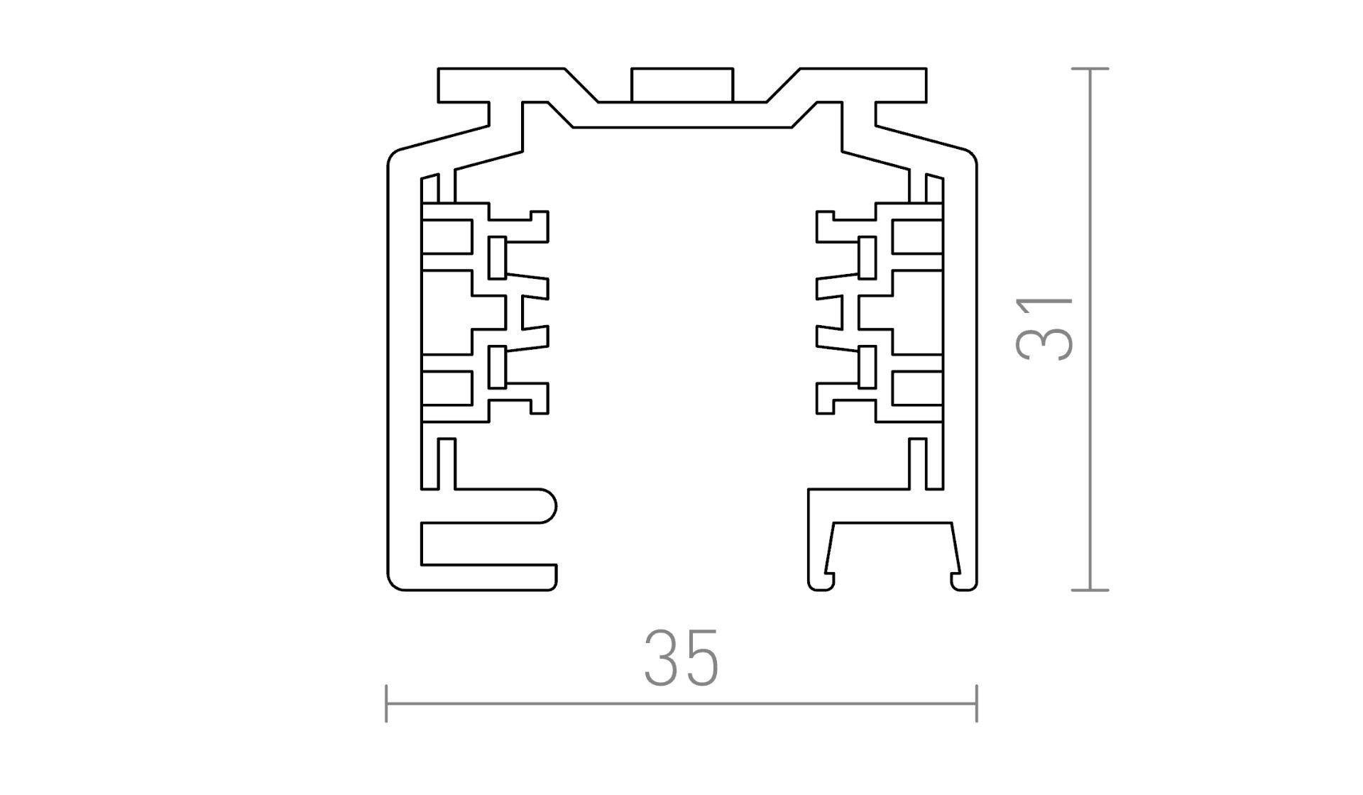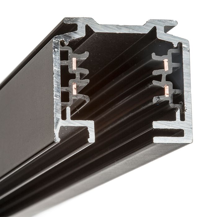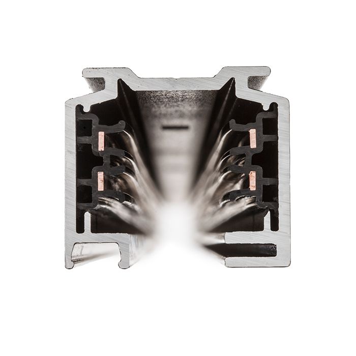 EUTRAC három áramkörű sín. Bármely profil könnyen vágható a kívánt hosszra. A huzalvégeket nem kell levágni vagy meghajlítani. Halogénlámpák használata esetén a minimális beépítési magasság 2,5 m. E magasság alatt javasoltak a LED lámpák.