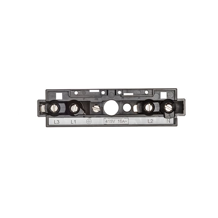 Folyamatos áramellátás a háromáramkörös EUTRAC sínhez, a sín felosztása nélkül. Maximális megterhelés 16A.