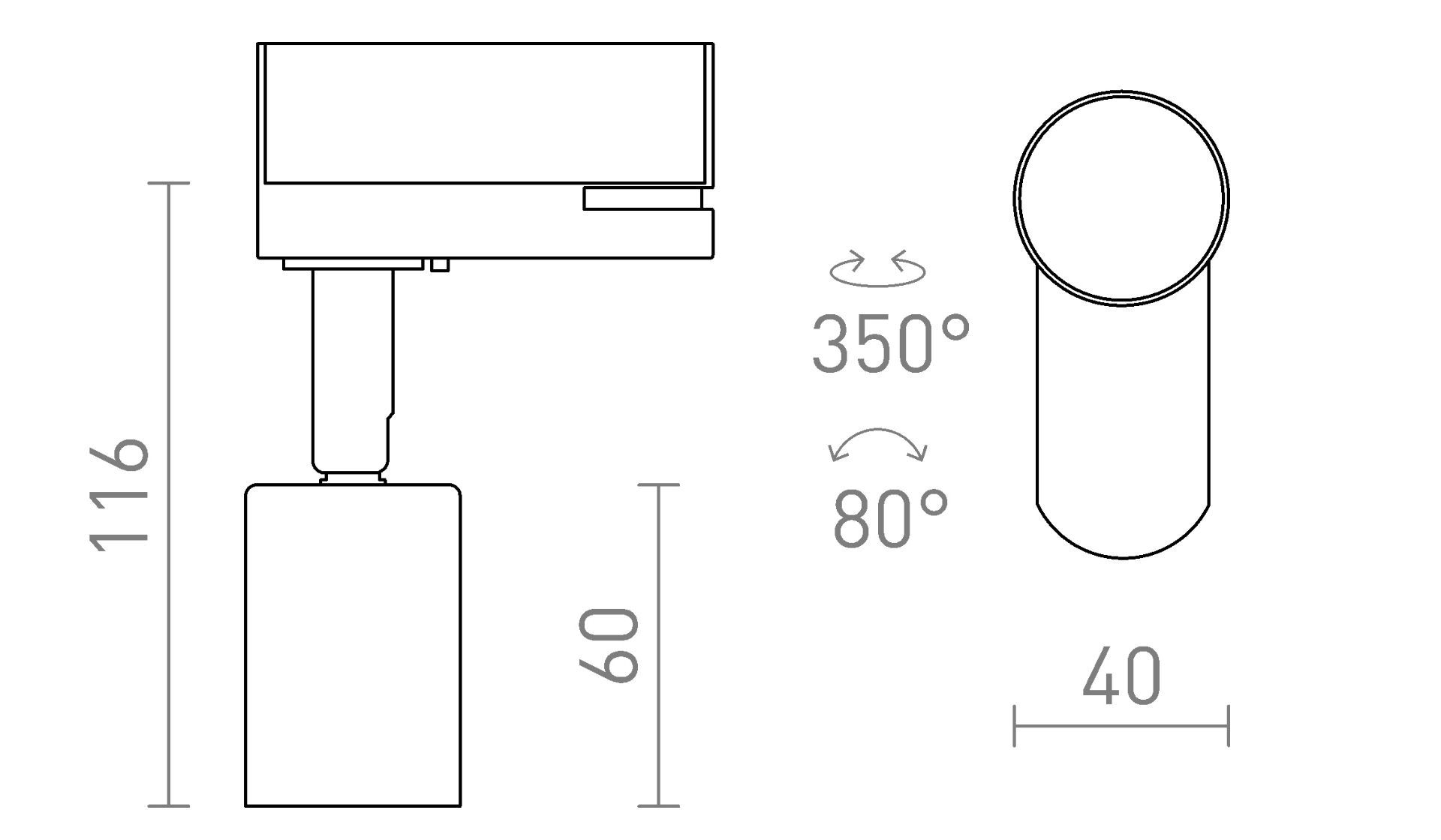 Egyszerű, sínrendszerbe illeszkedő lámpatest E27 es foglalattal.