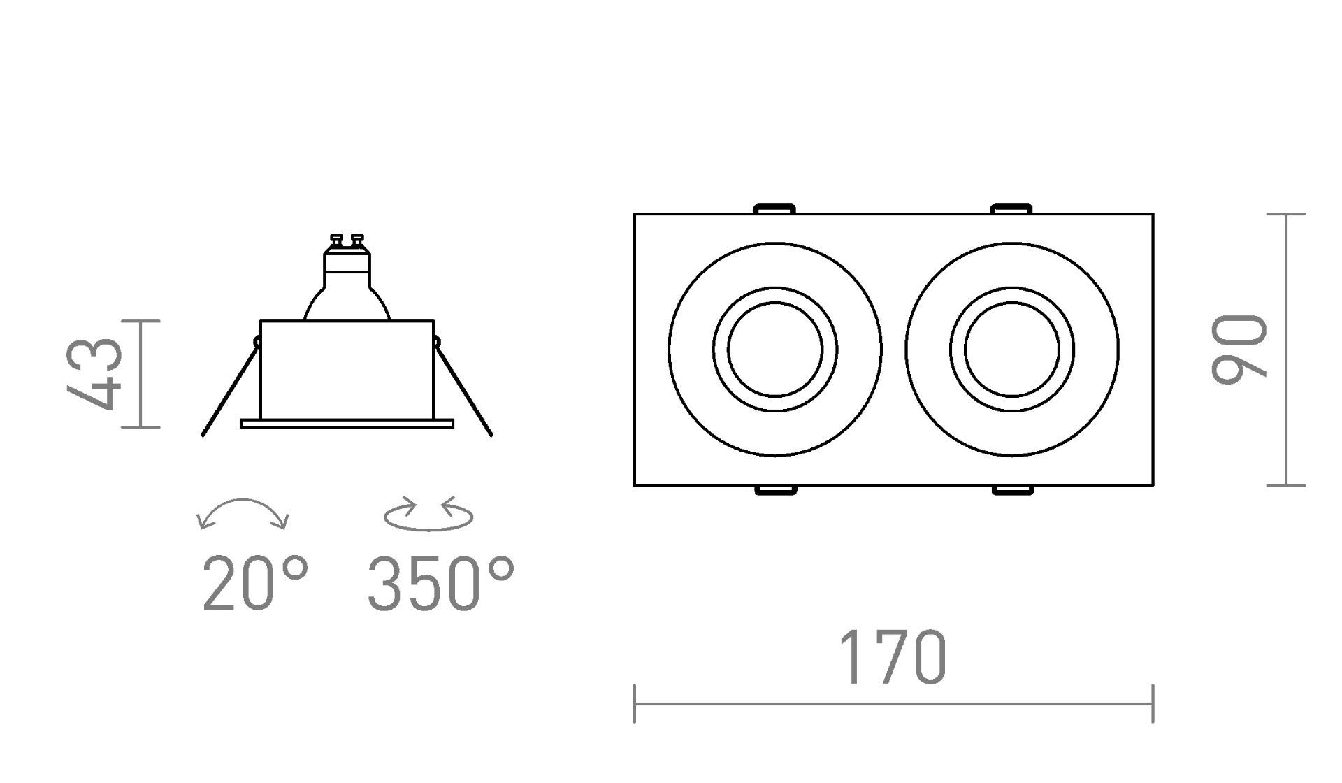 A gipszkarton mennyezetbe süllyeszthető LED fürdőszobai süllyesztett dupla világítótest, GU10 LED fényforrásokhoz.