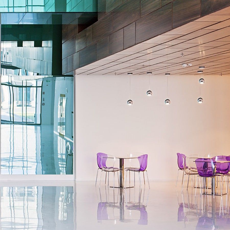 Függő lámpa erősen világító LED-del. A lámpatestből származó fényt egy matt akrilátból készült diffúzor szórja.