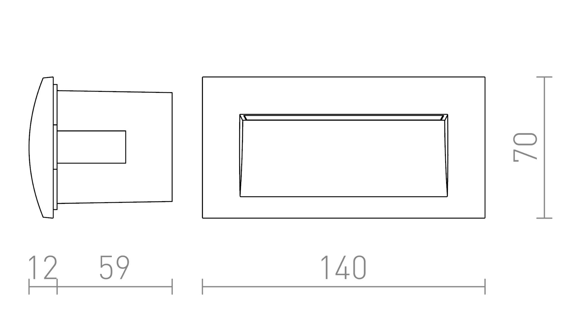 Süllyesztett téglalap alakú LED lámpatest a járdák, lépcsők vagy teraszok megvilágítására. Telepítés kizárólag lefelé történő világítással.