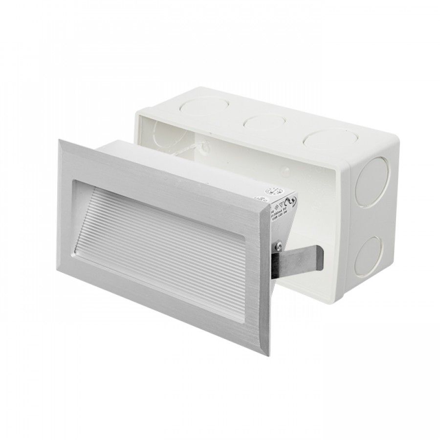 Téglalap alakú süllyesztett lámpatest szálcsiszolt alumíniumból, beépített COB LED-del. Az előlap vastagsága 0,3 cm. Tartozékdobozzal együtt. Csak soros csatlakoztatáshoz.