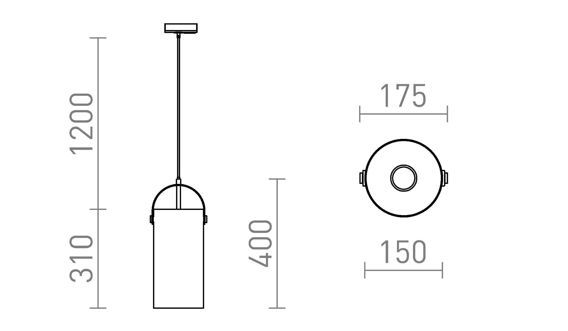 Függő lámpatest opálos hengeres üveggel. Lakkozott fém elemekkel, fekete textil kábellel. A tápkábel egy egykörös adapterrel van lezárva.