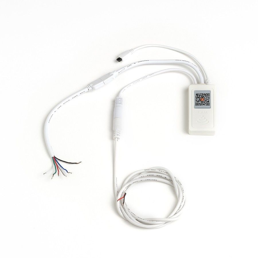 Wi-fi távirányító 5 az 1-ben. A LED szalagok Amazon Alexa, Google Assistant, Smart Life vagy Tuya Smart alkalmazásokkal vezérelhetők. A vezérlőegység csak 2,4 GHz-en működik. A csomag külön távirányítót is tartalmaz. A Wi-fi vezérlővel RGB LED szalagok vezérelhetők, vagy egyszínű G13798, G13799 LED szalagok tompíthatók.