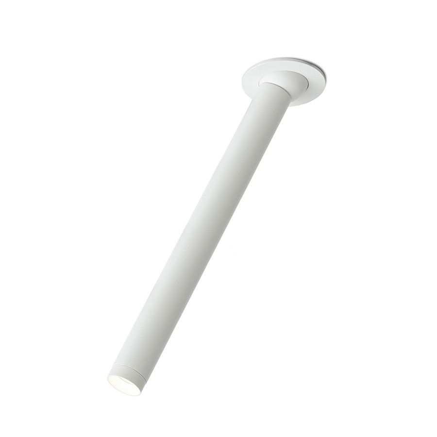 Diszkrét, csuklós LED beépíthető lámpa, amely részben gipszkarton álmennyezetbe van süllyesztve.