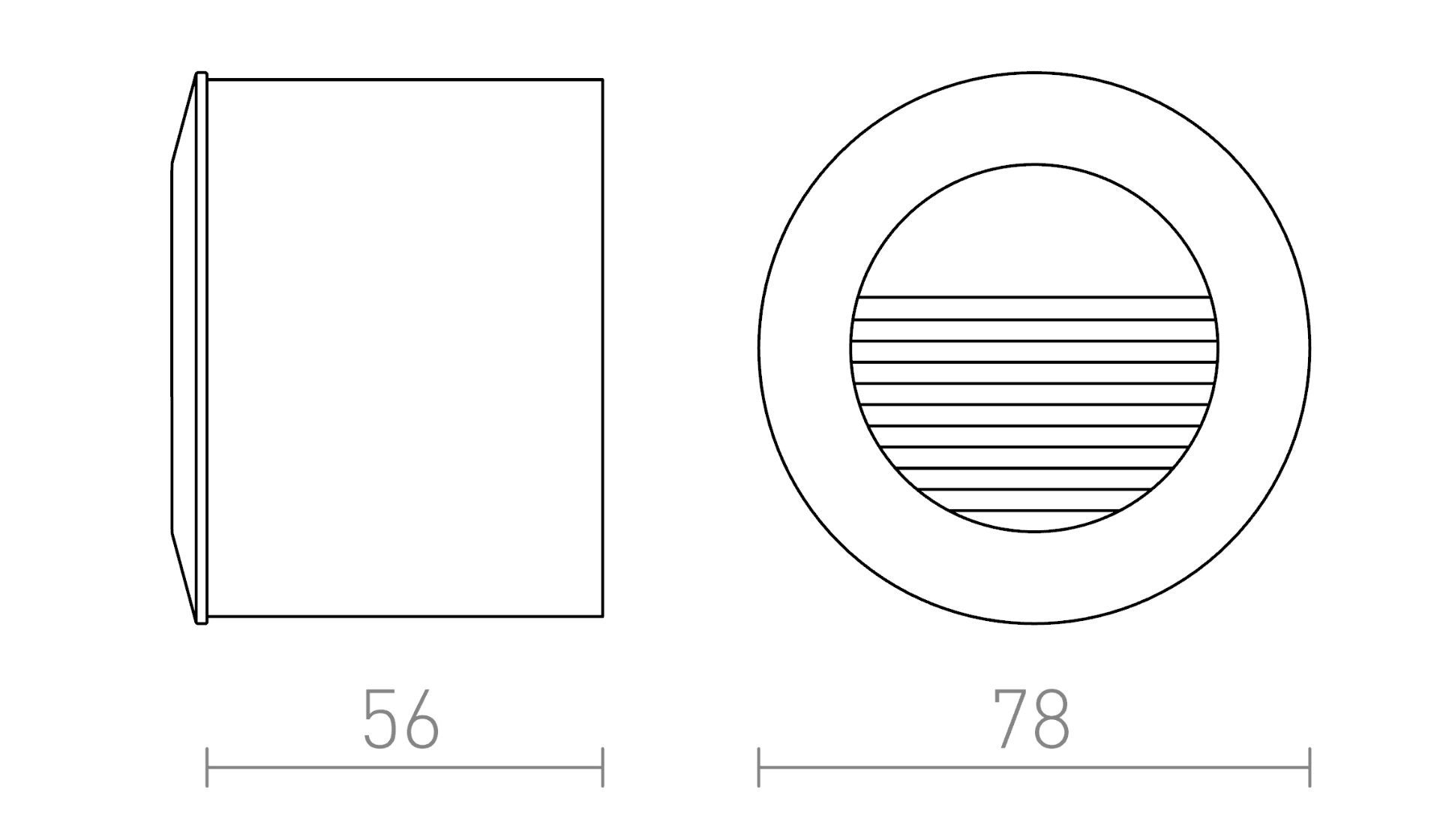 Kör alakú süllyesztett lámpatest, alkalmas beltéri és kültéri használatra egyaránt. Szerelődobozzal együtt. Telepítése világítással lefelé.