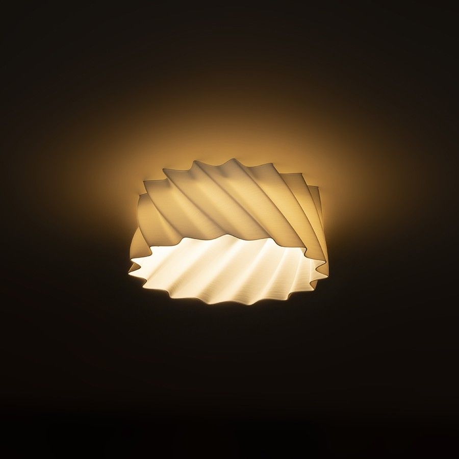 Alacsony beépítésű, vakolt mennyezetbe szánt LED lámpa dekoratív árnyékolóval. Az árnyékolót 3D nyomtatással készítették. Környezetbarát PLA anyagból készült, mely teljesen lebomlik. A szerelőlyuk mérete a csúsztatható rögzítő rugókkal állítható. A lámpa kényelmesen kicserélhető a meglévő halogén lámpák helyett, anélkül hogy módosítani kellene a szerelőlyukakat.