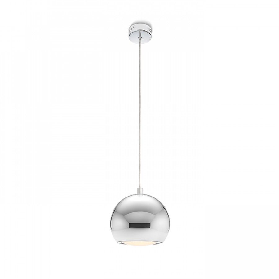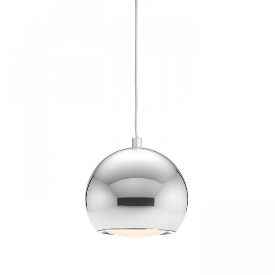 Függő króm lámpatest beépített LED forrással, tejakril diffúzorral borítva. A diffúzort egy alumínium gyűrű keretezi.
