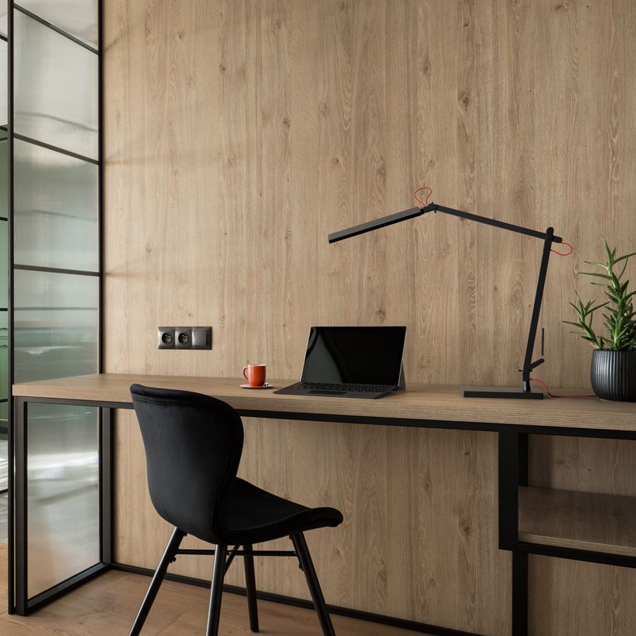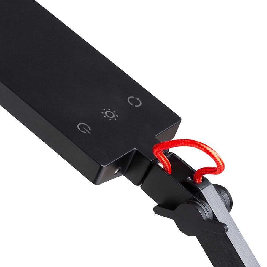LED asztali lámpa két karral. A fényerősség és a szín szabályozása a reflektor tetején található. Háromfokozatú fényerőszabályozás. A lámpa az EMA (R14290, R14291) rögzítő külön megvásárlásával az asztallapra vagy polcra is rögzíthető.