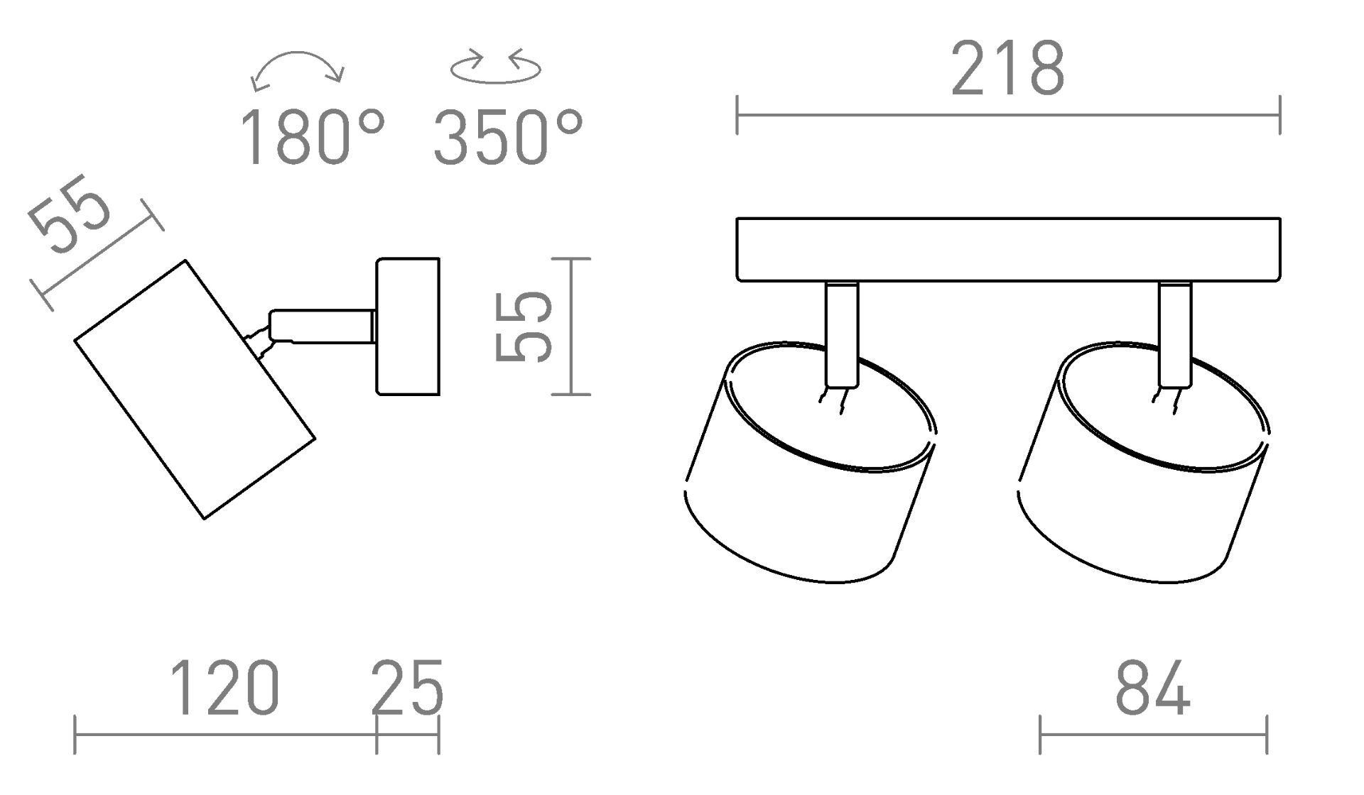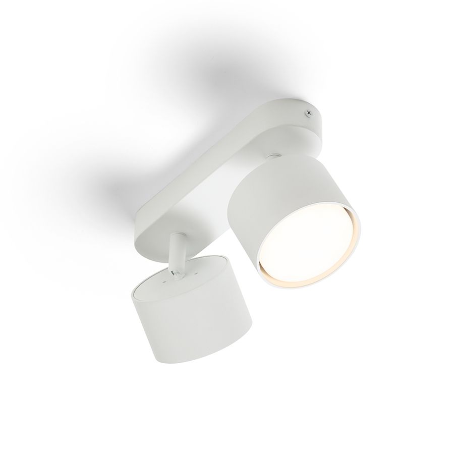 Alumínium lámpatest 2 db dönthető reflektorral, hosszúkás talapzaton. A lámpatest alkalmas GX53-as foglalattal rendelkező energiatakarékos LED lámpákhoz.
