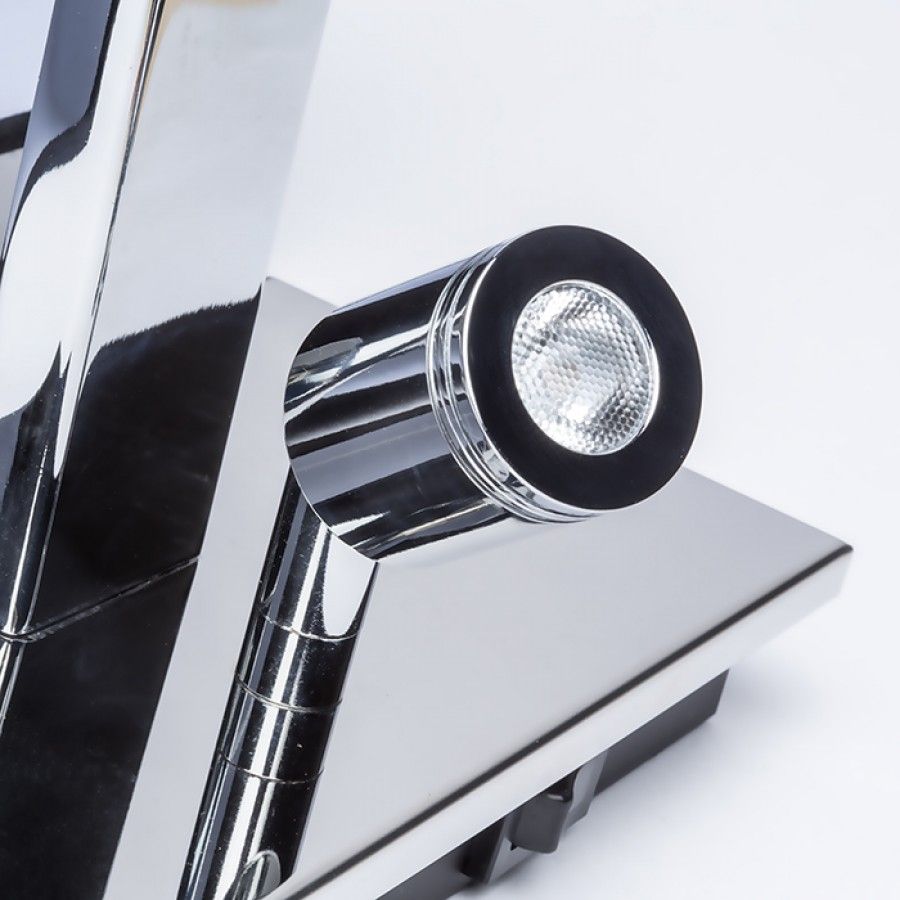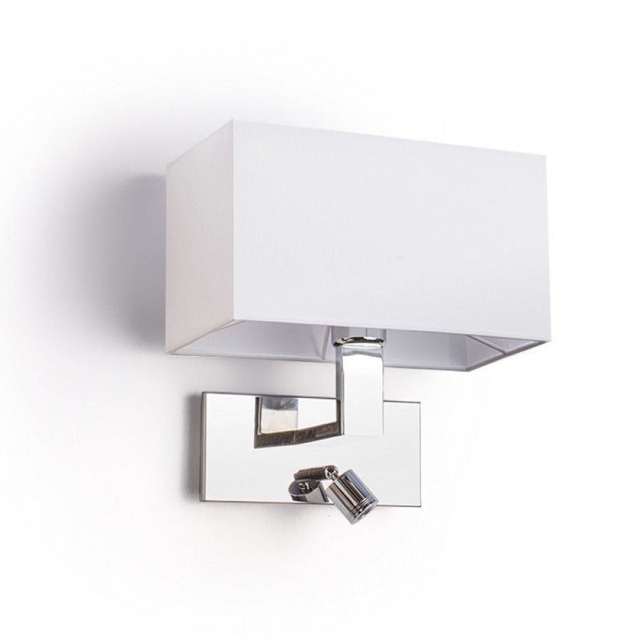 Fali lámpa strukturált textil búrával, valamint egy hozzáadott 3W LED reflektorral. Mindkét fényforrás külön-külön vezérelhető az alapon lévő kapcsolóval.