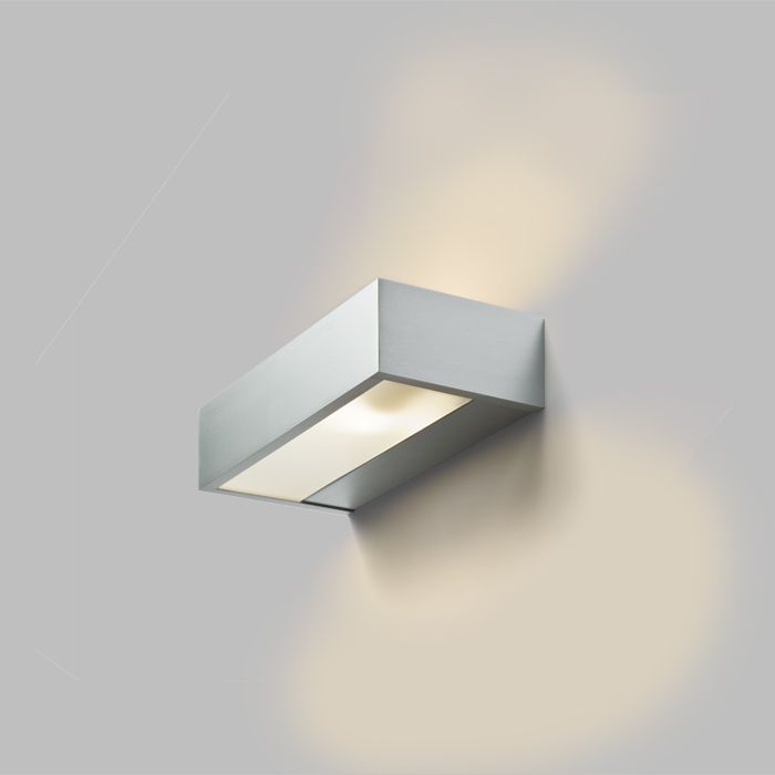 Fali alumínium lámpatest szatinált üvegbúrával. fel/le típusú megvilágítás.