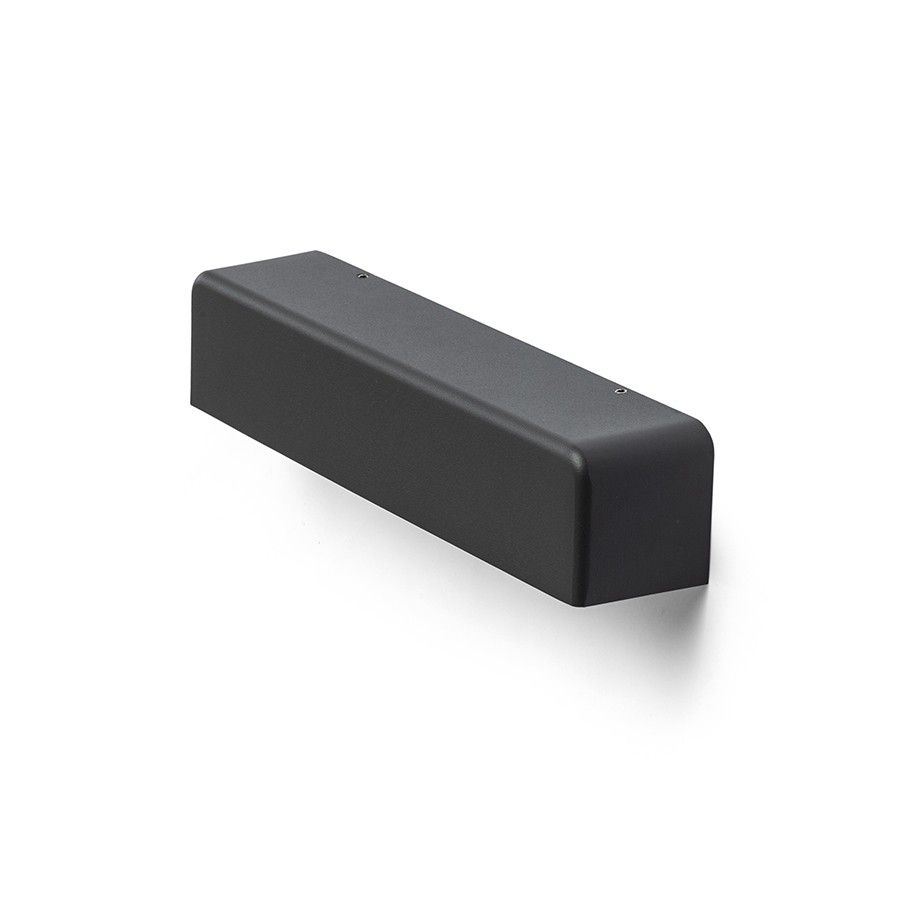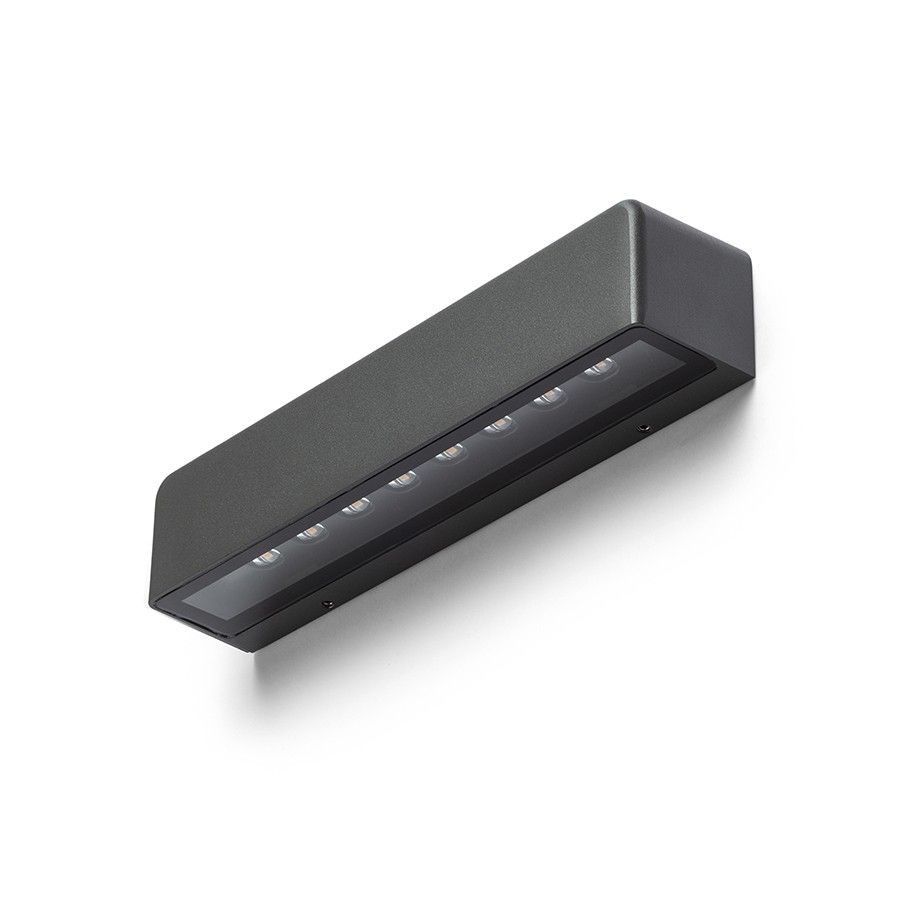 Kültéri, falra szerelhető alumínium LED lámpatest téglalap alakú, aszimmetrikus világítással lefelé.