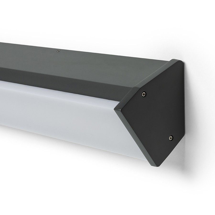 Masszív alumíniumból készült falra szerelhető kültéri LED lámpatest. A lámpatest alakja döntött, hogy jobban megvilágítsa a területet lefelé és előre. Javasoljuk az IP BOX G12984 használatát a hálózati kábel csatlakoztatásához.