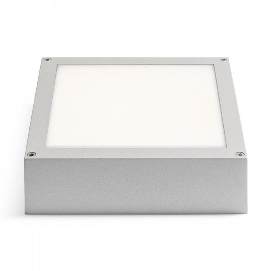 Kültéri négyzet alakú felületre szerelhető lámpatest LED technológiával. Az előlap tejakrilátból készül.
