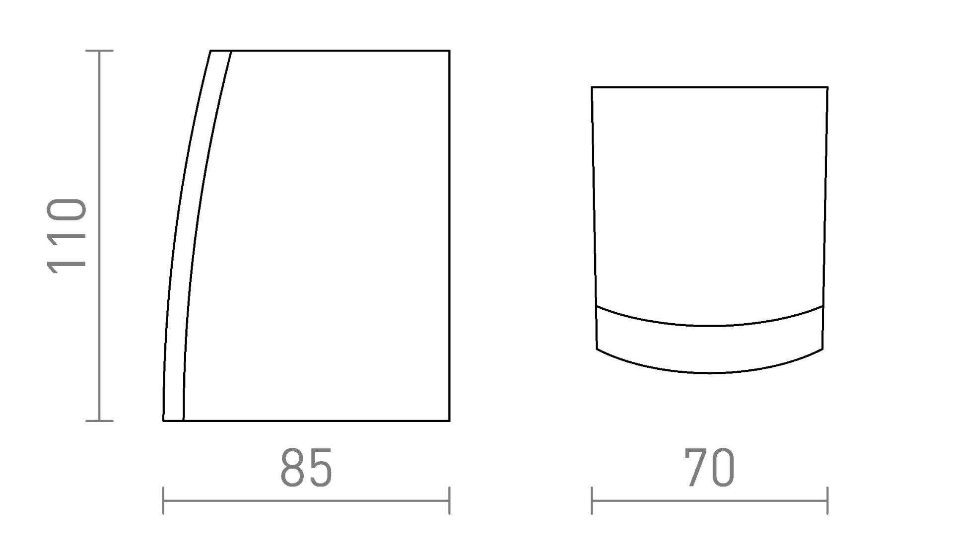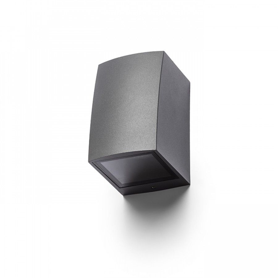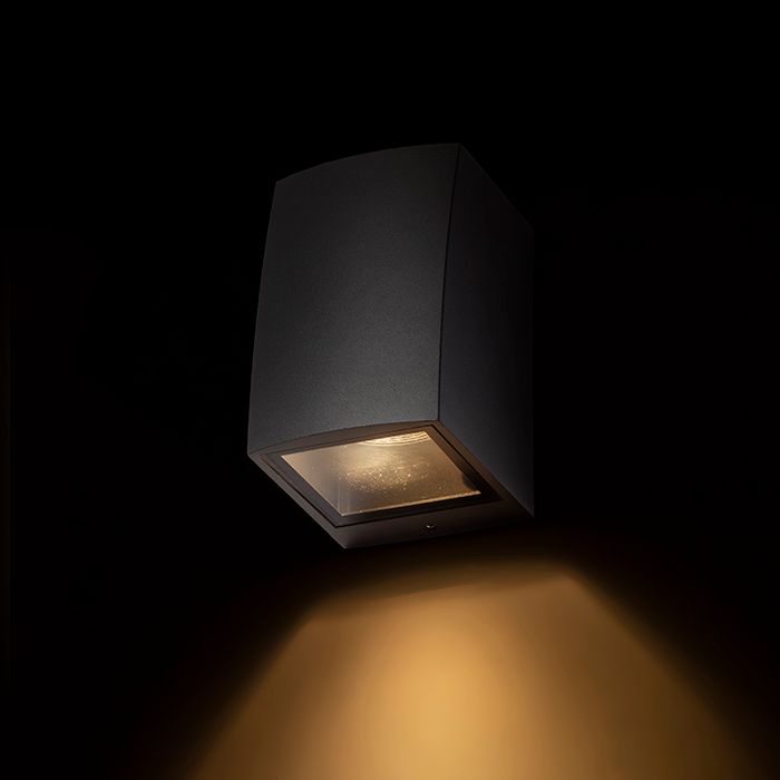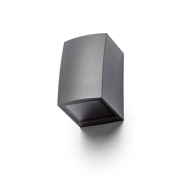 Kültéri, falra szerelhető alumínium lámpatest GU10 foglalatú fényforrásokhoz.