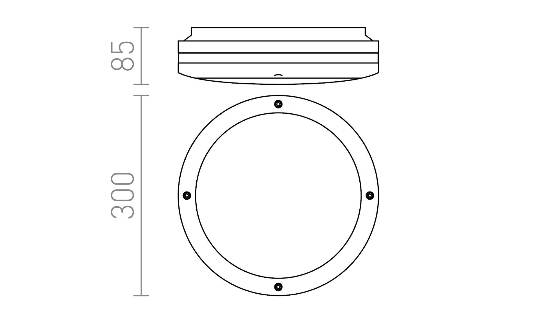 Kültéri kör alakú alumínium lámpatest opál diffúzorral polikarbonátból, mennyezetre vagy falra való felszereléshez.