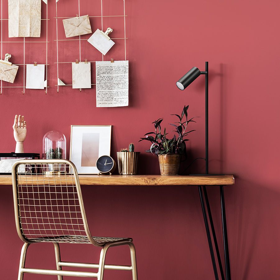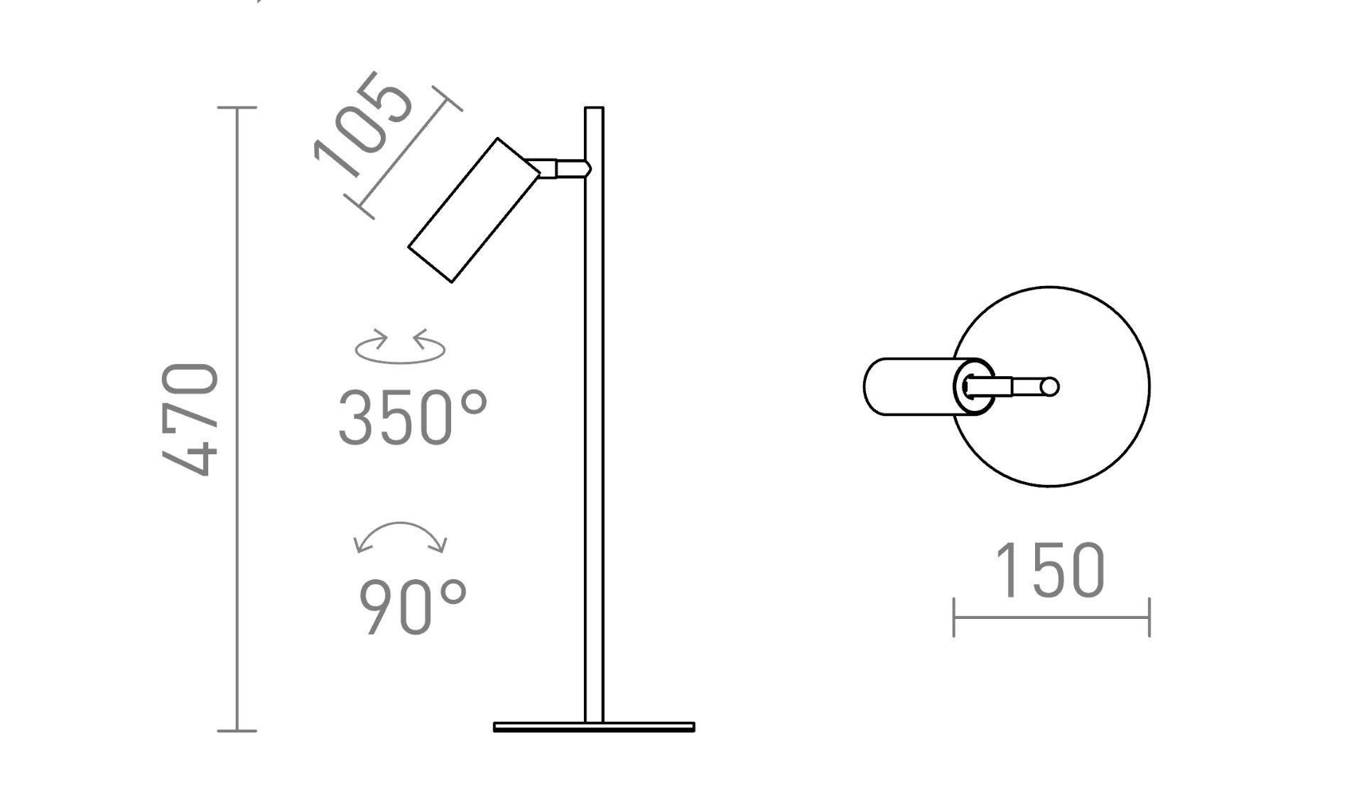 Asztali LED lámpa, henger alakú reflektorral mozgatható csuklón.