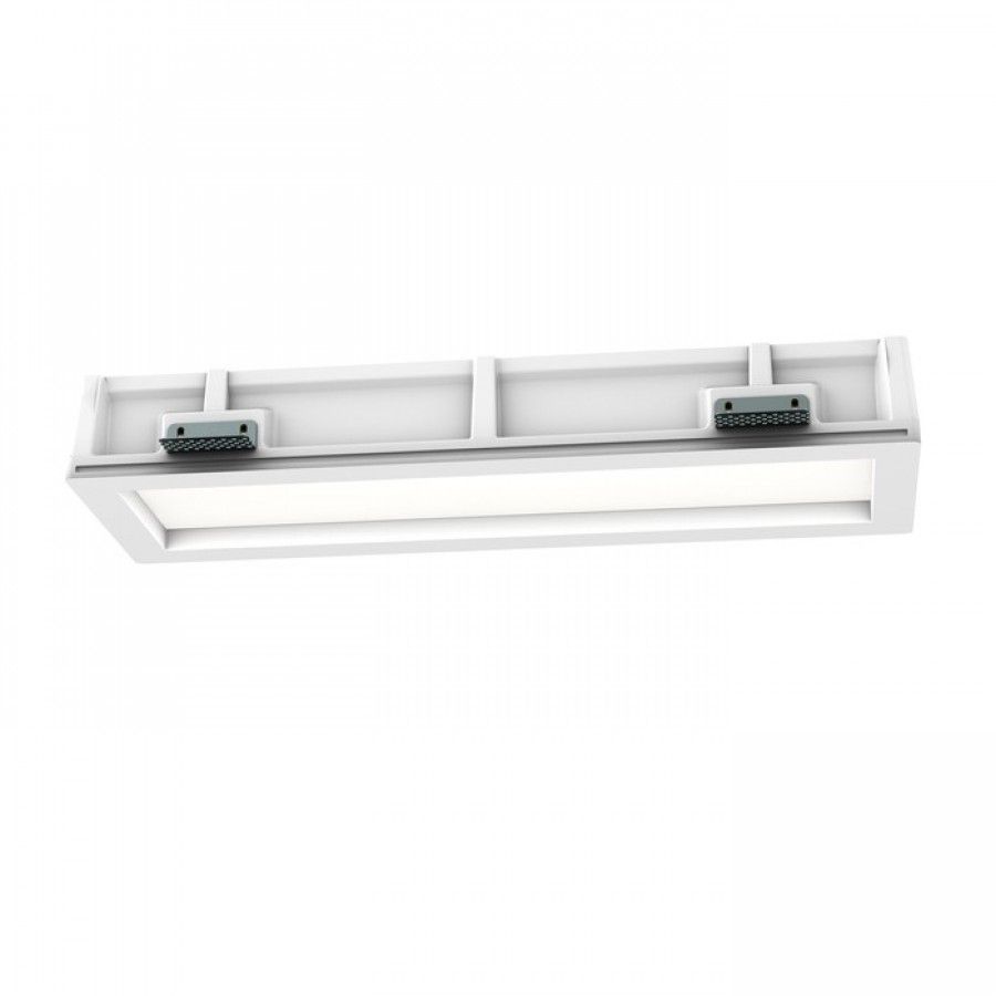 Hosszanti keret nélküli gipsz lámpatest két lineáris fénycsőhöz. A lámpatest beltéri falfestékkel átfesthető. Kizárólag gipszkarton mennyezetbe.