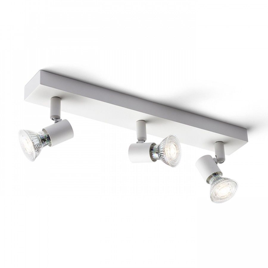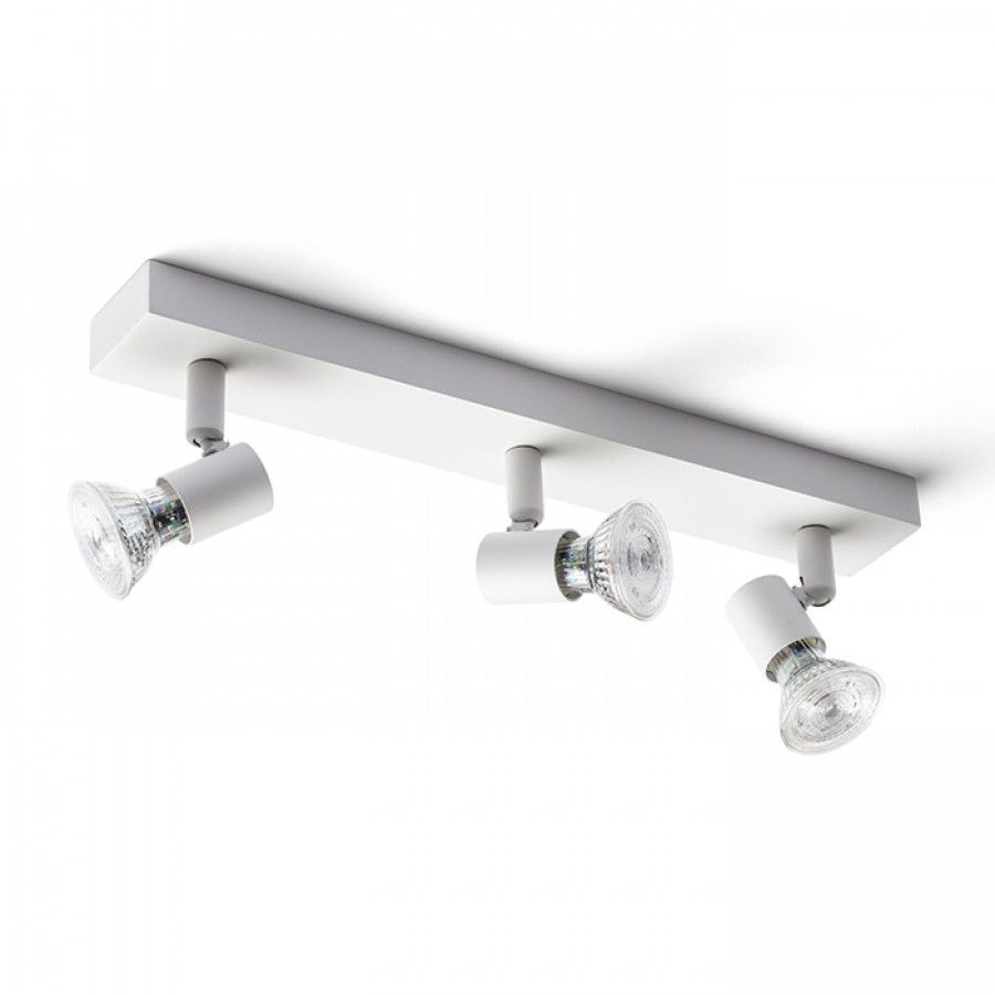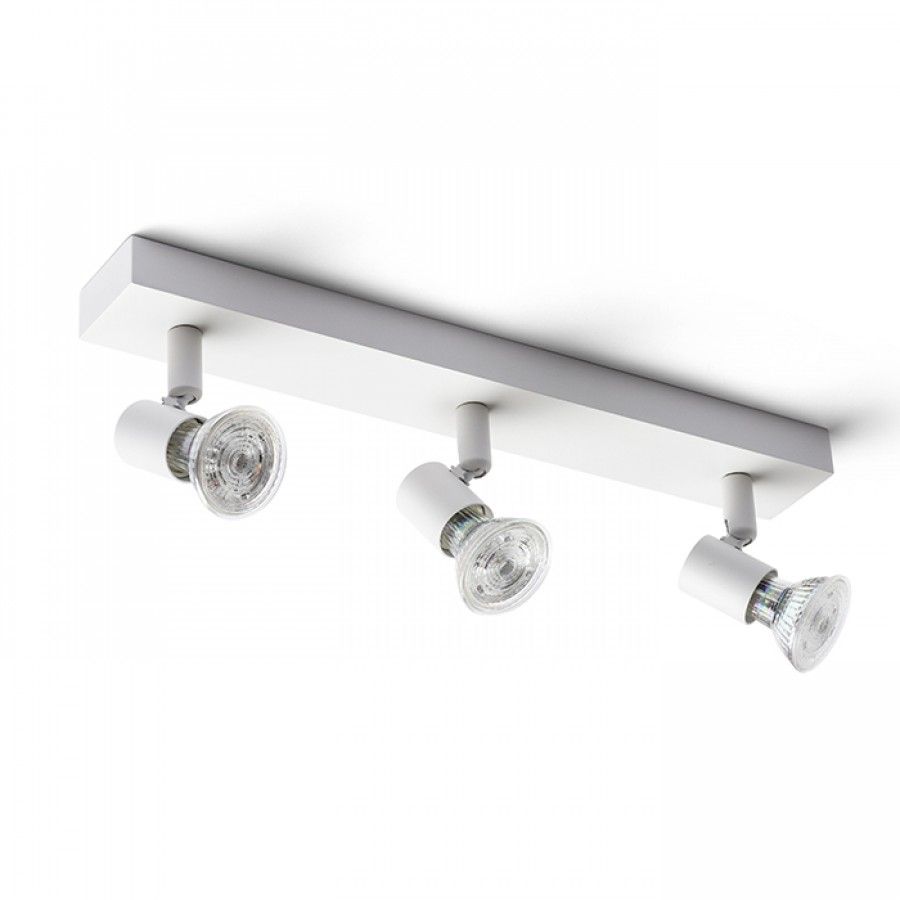 Egyszerű hármas fém spot lámpa, falba vagy mennyezetbe való könnyű elhelyezéshez. GU10 design reflektoros izzókhoz.