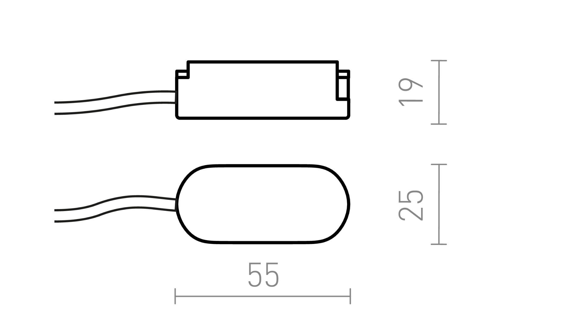 1,9/2,56/5,5/25 (Magasság/Szélesség/Hosszúság/Kábel)