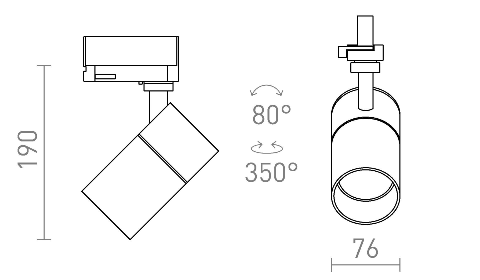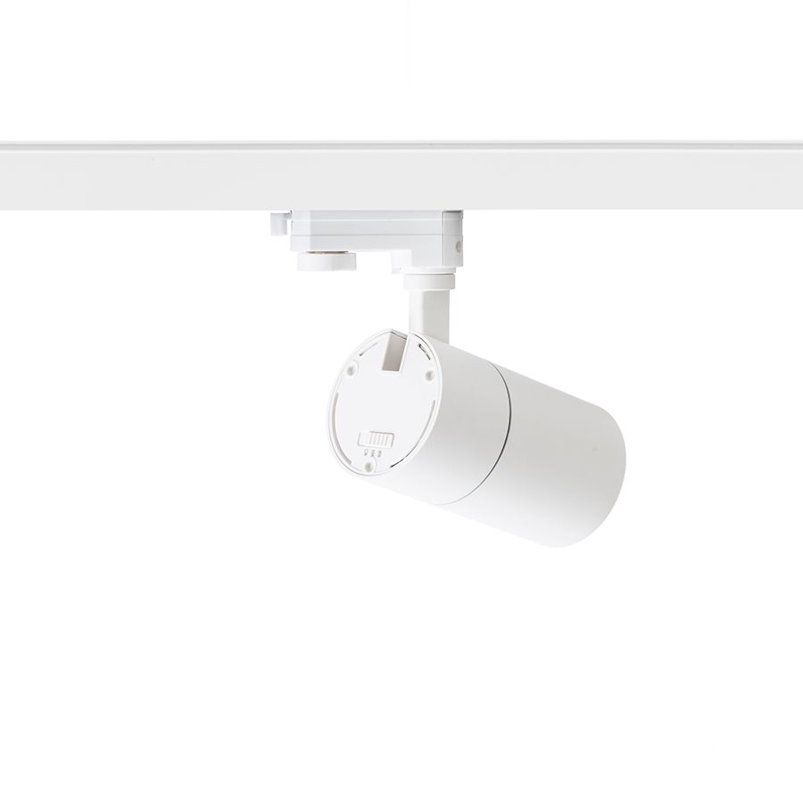 Halványítható hengeres lámpatest három áramkörös sínhez, állítható fényszínnel: meleg fehér (WW), semleges fehér (NW), hideg fehér (CW). TRIAC dimmelés.